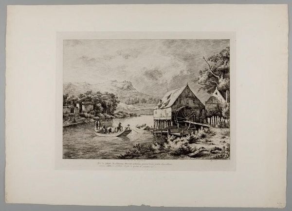 Editor: This is Jean Jacques de Boissieu's "View of Bridge and Château of Sainte-Colombe," housed right here at the Harvard Art Museums. The level of detail is captivating. What do you make of this piece? Curator: The etching process itself is critical. Note how Boissieu's skill transforms metal into a scene depicting labor, transport, and leisure along the river. The printmaking process democratized images; how did that affect social structures and consumption of art? Editor: That's fascinating! I hadn't considered the printmaking process as a social force. Curator: Exactly! The materiality and reproduction of the artwork are as important as the image itself. Editor: Thanks for helping me appreciate this work on a new level.