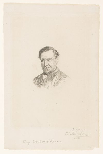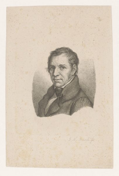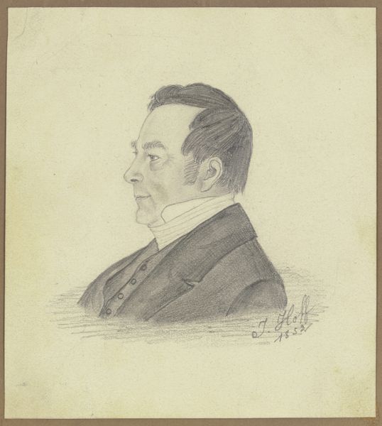 This is a portrait of an unknown man, drawn by Frederik Hendrik Weissenbruch in the mid-19th century. It’s made with graphite on paper – humble materials, easily accessible, and capable of capturing fine detail. Notice the grid lightly sketched beneath the portrait. This suggests a methodical process, perhaps even a transfer from another image. The artist is using a technique that can be learned and repeated. The soft gray tones of the graphite create subtle gradations of light and shadow, giving form to the man’s face and clothing. The texture of the paper itself becomes part of the image. It is a good example of the kind of mid-19th century, middle class portraiture, rendered for a growing market of people who wanted to memorialize their likeness. Ultimately, the drawing reminds us that even seemingly simple materials can be used to create a lasting image. The meaning of this artwork lies not only in its subject, but also in the artist's skillful manipulation of materials and techniques.