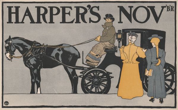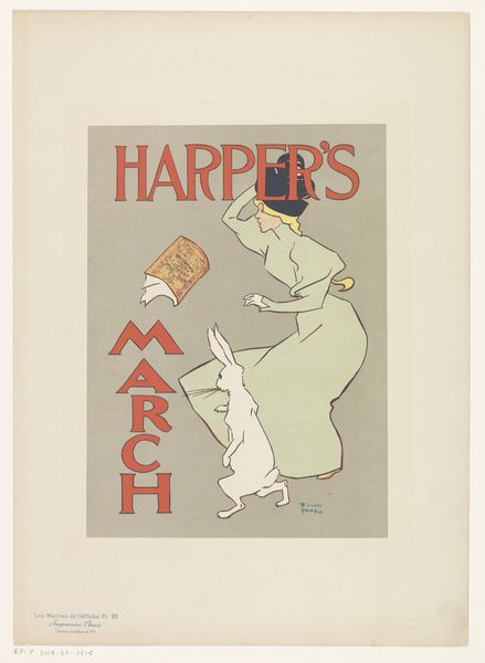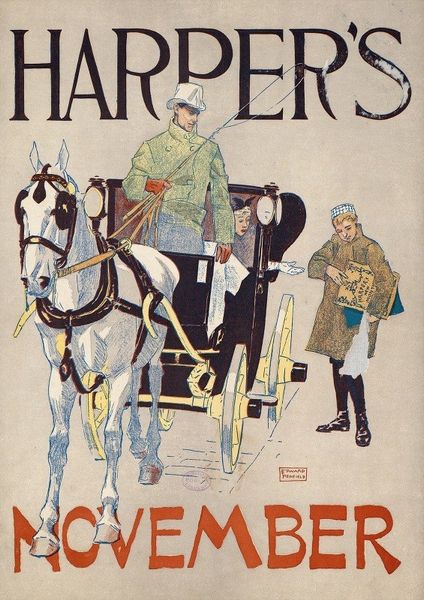 Edward Penfield created this poster, "Harper's May," around 1897, using lithography, a printmaking process that relies on the skillful layering of colors. It was a typical process for magazine covers at the time. Lithography allowed Penfield to achieve flat, bold colors and crisp lines, perfectly suited for the Art Nouveau style he employs here. Notice how the colours and shapes are carefully delineated. Penfield’s success lay in his simplification of form and his emphasis on design over detail. The lettering and the shapes are bold, but the picture is more delicate. The poster's mass production reflects the rise of consumer culture at the turn of the century. The image itself hints at the upper class, with its fashionable woman. The use of lithography enabled the widespread distribution of art, blurring the boundaries between commercial design and fine art.