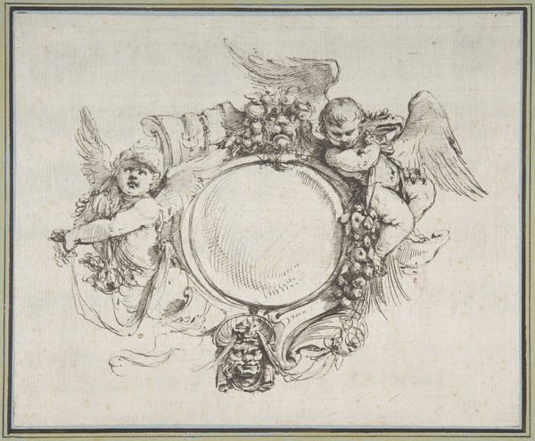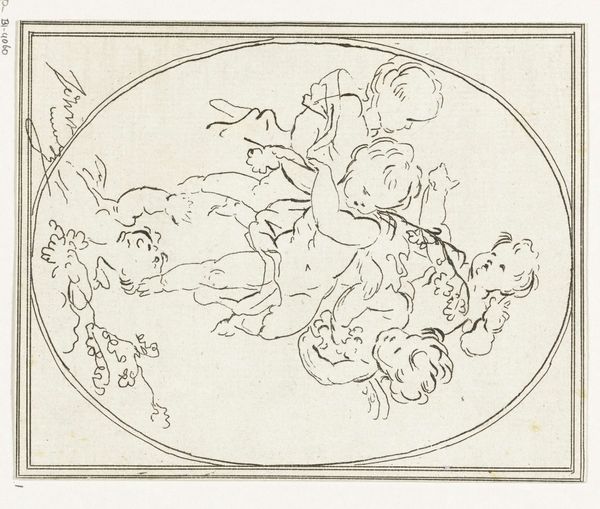 Editor: We’re looking at "Het element water," or "The Element Water," a drawing from the first half of the 18th century by Jacob de Wit, rendered in ink on paper. There's a delicate quality to the lines, a certain buoyancy. How should we interpret this image of frolicking cherubs? Curator: This drawing allows us to consider the broader public role of allegorical imagery in the Baroque period. De Wit created many ceiling paintings. What purpose would this sketch serve in that context? Editor: Possibly a study for a larger ceiling piece? What I'm seeing are putti surrounded by water motifs – clouds, suggestion of waves... Perhaps destined for a wealthy patron's home, designed to impress? Curator: Precisely. These allegorical representations of the elements, often displayed so prominently, were status symbols. Think about the message it conveyed – knowledge, wealth, a connection to classical learning and mythological narratives. De Wit positions the patron within a powerful visual and intellectual tradition. Where do you think this puts pressure on art? Editor: Does that almost turn into propaganda? An upper class showing off, I mean. Creating art just for political messaging sounds awful. Curator: It certainly complicates our view of Baroque art. It urges us to consider whose voices and perspectives were amplified, and whose were suppressed, by these visual displays of power. What might viewers at the time have thought, especially those who were not the elite patrons? Editor: That really shifts my thinking. I came in thinking cute cherubs, and now it’s making me question social structures and political intentions of wealthy people. Thanks, I appreciate that. Curator: Indeed, art whispers about political power! A good reminder to look critically at whose stories are told, and how they’re told.