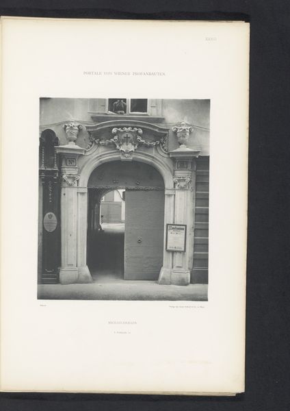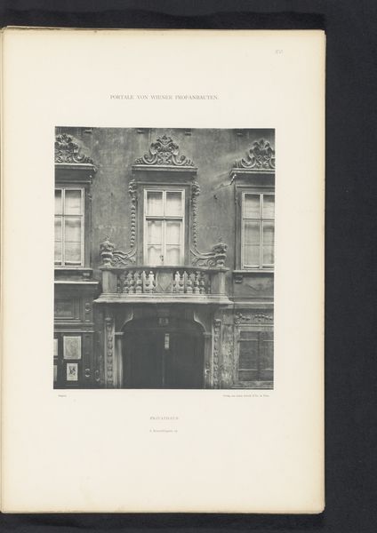 This anonymous photograph shows the entrance portal of Palais Batthyány in Vienna. The Palais, or palace, is a visible marker of aristocratic power. Looking at the image, we can consider the social conditions that shaped its production. Vienna, the capital of the Austro-Hungarian Empire, was known for its grand architecture that displayed the wealth and power of the ruling elite. The Batthyány family, being one of the most prominent noble families in Hungary, would have commissioned such a building to assert their status. The photograph itself, as a medium, also plays a role. Its circulation through books or journals makes visible the social structures of the time. Architectural photography like this can be seen as self-consciously conservative, reinforcing existing hierarchies. To understand this artwork better, we can research the history of the Batthyány family, the architectural trends in Vienna during the time the palace was constructed, and the role of photography in shaping public perception of social class.