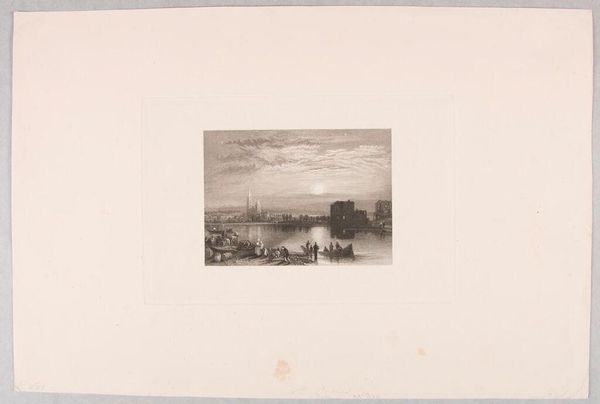 Editor: So, this is "Figures on Ice near a Mill," an etching made by Jan Dam Steuerwald sometime between 1822 and 1863, and it’s currently housed at the Rijksmuseum. The figures on the ice seem to be enjoying themselves, but there's also something quite stark and wintry about it. As a historian, how do you interpret this work in relation to its historical and social context? Curator: Well, first, consider the setting: ice skating in the Netherlands wasn't just recreation. It was deeply woven into the social fabric, connecting communities when waterways froze. It wasn't just for the wealthy, although they certainly participated. Steuerwald produced a print, making this imagery more widely accessible. Who do you think these images served? Editor: I suppose prints like this brought these genre scenes to a broader middle class, allowing them to partake in the visual culture. It almost democratized art, in a way? Curator: Precisely. And look at the windmill – a classic Dutch symbol, often representing industry and prosperity. In the 19th century, industrial advancements were causing societal shifts, creating tension between traditional and modern ways of life. These idyllic winter scenes served as a kind of visual reassurance. What is being reassured, do you think? Editor: Maybe these scenes provided a sense of nostalgia for simpler times? It looks peaceful and ordered, nothing like the noisy factories that were appearing elsewhere. Curator: Exactly! It’s interesting how images of leisure and landscape can participate in national identity and even social commentary. So, looking at the placement of the windmill, what would you infer by this placement from a socio-political perspective? Editor: Hmmm…Well, the windmill has been strategically placed in the artwork as the most salient symbol of the piece. In a way, this seems to symbolize that society in this historical era was greatly influenced by societal dependence on technology. It would probably be extremely common to depend greatly on technology during that time period. Curator: Excellent observations. These winter landscapes were not mere aesthetic choices, but engaged directly with ongoing societal dialogues. I’ve found new perspectives myself, reflecting upon our exchange. Editor: I definitely learned so much about how art acts as both a reflection of, and an active participant in, societal dialogues.