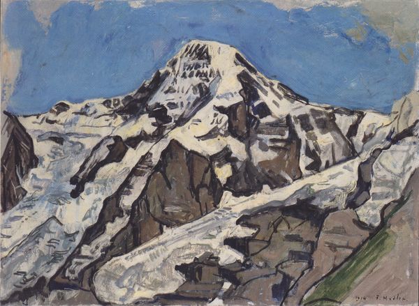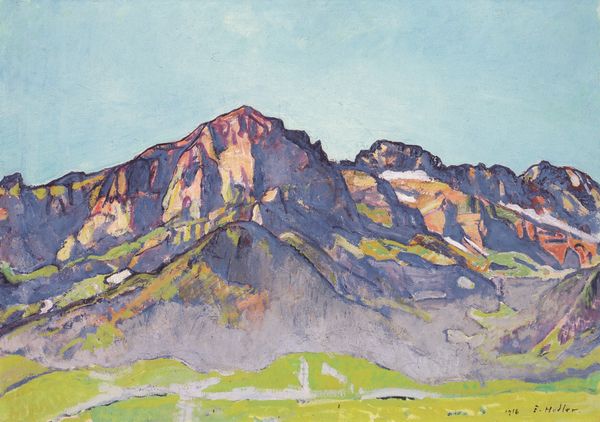 Ferdinand Hodler made this painting, Schynige Plate, with oils, and what grabs me first is how he builds this mountain out of marks. The blues and greens aren't blended so much as laid down side by side, and that lets your eye do the mixing. It's a process-y thing, right? Like, he's showing you how he's seeing, how he's building this monumental form. The texture is great, not super thick, but you can feel the brushstrokes, especially in the way the light catches those little ridges. Check out the way he carves out the shadows with these dense, almost indigo strokes, then contrasts them with the softer, yellower greens in the foreground. It's not just about replicating the landscape, it's about feeling the weight and presence of it. When I look at it I think of Cezanne, a real master of seeing with colour. Hodler is similarly reminding us that art is a conversation across time, and that paintings have so much more to tell us than just what they depict.