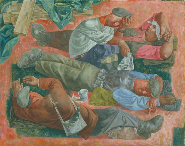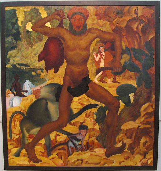 André Derain made this painting, *Deerstalking*, with oil on canvas, and you can see he's playing with a limited palette to create this sort of tonal unity. It feels like he's more interested in the process of image-making than representing an actual scene. Look at how Derain has flattened the space, pushing the figures and animals right up to the picture plane. The whole thing is bathed in this warm, almost monochromatic light, and the brushwork is smooth, with very few visible strokes. But then you see these odd, almost cartoonish details, like the way the dogs are rendered, or the strange, staring eyes of the figures. There's a tension between the overall calmness of the colour and the slightly unsettling quality of the scene itself. It reminds me a little of the work of Henri Rousseau, another French painter who was interested in creating dreamlike, imaginative worlds. In both cases, there's a sense of naiveté, a kind of playful innocence that allows them to explore different ways of seeing and experiencing the world.