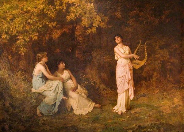 "Only a Shower" was painted by George Hemming Mason sometime before 1872. In it, we see Mason, who was deeply influenced by the Barbizon school, turning his gaze towards the rural life of women in the Italian countryside. The painting depicts a pastoral scene with women either bathing or resting in a forest-like setting. We see a young woman standing in a shallow tub, seemingly drying her hair, while other figures recline nearby. There’s a sense of timelessness, but also an underlying tension. The women appear both as figures in a landscape, and as subjects with their own desires and interior lives. Their clothing hints at the social position and lived experiences, where labor and leisure intertwine. The emotional resonance of this piece lies in its intimate portrayal of women, framed by the natural world. Mason's work prompts us to reflect on how we represent women in art, caught between romanticized ideals and the realities of everyday life.