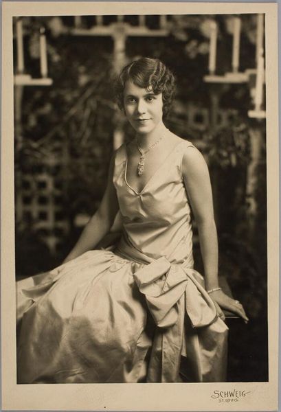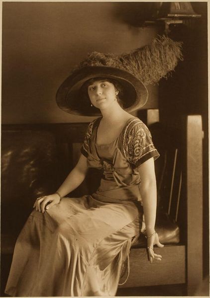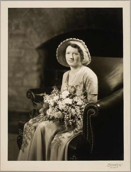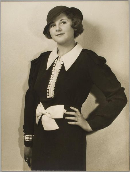 Editor: Here we have Franz Ziegler’s gelatin-silver print, "Portrait of Princess Juliana," created in 1937 and displayed at the Rijksmuseum. It's regal, of course, but also strangely… vulnerable? The feathers and jewels, combined with that slightly reserved expression, create an intriguing contrast. What strikes you most about it? Curator: It’s funny you say that. The Dutch have always had a complicated relationship with their monarchy. It needs to be grand, to project stability, yet approachable enough not to seem out of touch. This photo feels very much like that balancing act, doesn't it? The modernist aesthetic, the slightly grainy texture of the gelatin-silver print - it’s an interesting counterpoint to the princess’s opulent attire, wouldn't you agree? Editor: Absolutely! It feels like an attempt to modernize the image of royalty. Is that typical of portraiture from this time? Curator: In some ways. Photography had matured, moved past stiff studio poses, so the artist had many avenues available to depict their sitter, allowing for personal stories and vulnerabilities. Think of other portraits from the era – there was a clear interest in portraying not just status but *being*. And those shadows… Don't they hint at the storm clouds gathering over Europe at the time? Editor: Wow, I hadn't thought about the historical context so directly, but it makes perfect sense. The almost ghostly quality feels much more charged now. Curator: Right? Ziegler has left us more than just a pretty face – he’s whispered a whole era onto the page. This portrait holds history but still remains so incredibly intimate. Editor: This has totally reshaped my initial perception. It’s much more complex and engaging than I first realized! Curator: Isn't that the best part of looking at art? We go in thinking one thing and emerge, happily, somewhere entirely new.