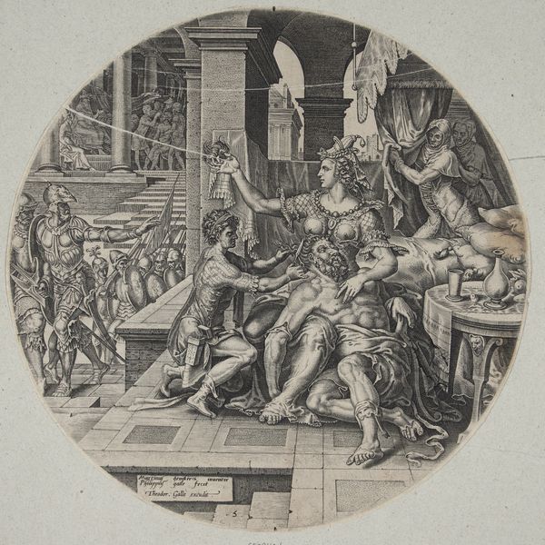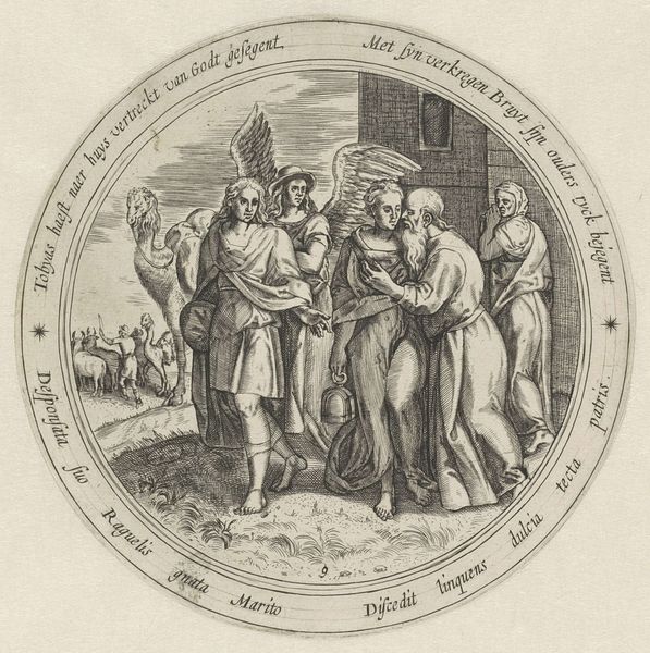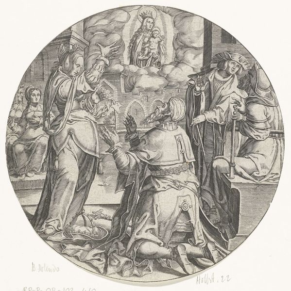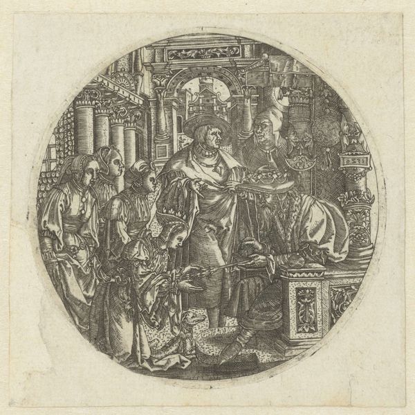 Georg Pencz created this engraving called 'Christus heeft dorst en krijgt drinken aangeboden', translating to "Christ is thirsty and is offered a drink" sometime between 1500 and 1550. Pencz, a German Renaissance printmaker, worked during a time of significant religious and social upheaval. This piece reflects the period's complex relationship between religious devotion and everyday life. You’ll see Christ depicted in a moment of vulnerability, receiving water from figures dressed in contemporary 16th-century clothing. This collapsing of biblical narrative and contemporary life was typical. Pencz was briefly imprisoned and banished from Nuremberg for his religious views, and this experience may have influenced his nuanced portrayals of religious themes. The emotional core of this artwork lies in its intimate portrayal of human compassion, crossing both social and divine boundaries. The act of offering water becomes a powerful symbol of empathy and human connection.