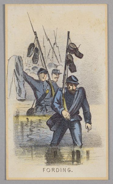 Winslow Homer created this print titled "Life in Camp, Part 2: Fording" without an exact date, depicting Union soldiers crossing a body of water. Note the rifles, held high like ceremonial staffs, and the shoes slung over them. This image speaks to the practical challenges of war, yet it's steeped in deeper currents of meaning. The act of "fording"—crossing a river—has ancient symbolic weight. Recall the river Styx, the boundary between life and death in Greek mythology, or the Jordan River, signifying spiritual rebirth. Here, the river is literal, but the image is full of the psychological weight of transition and vulnerability. Hanging their boots, their former paths, over their rifles, they are ready to leave behind their lives before the conflict. The soldiers look forward with a mix of determination and weariness. We see an echo of the endless cycle of human conflict, each generation crossing its own river of fire. This image is a testament to resilience, a symbol of how we carry our burdens—and our past—into an uncertain future.