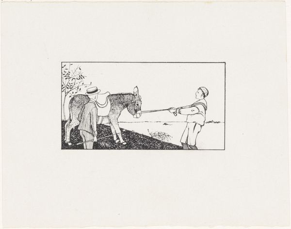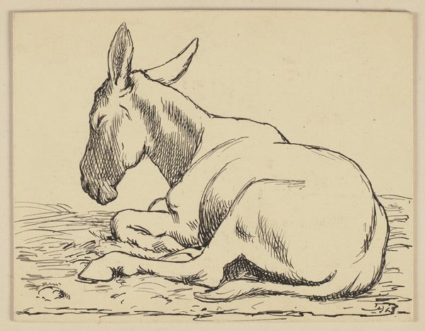 This small drawing, "Untitled (Horse and Lying Foal)" by Leo Gestel, captivates with its simple yet evocative lines. The composition is dominated by the two figures, a standing horse and a resting foal, rendered in a style that emphasizes form over detail. Gestel's use of line is particularly striking. Notice how he employs short, repetitive strokes to define the contours and suggest texture, almost like a topographic map. This technique flattens the image, reducing depth and focusing attention on the surface pattern. The lines are not merely descriptive; they create a sense of movement and energy, animating the otherwise still scene. The monochromatic palette further accentuates the formal qualities of the work. Without the distraction of color, the viewer is encouraged to appreciate the interplay of light and shadow, the balance of positive and negative space. This drawing invites us to consider how fundamental elements like line and form can convey both the physical presence and the underlying vitality of the natural world, revealing the essence of these creatures through a language of pure abstraction.