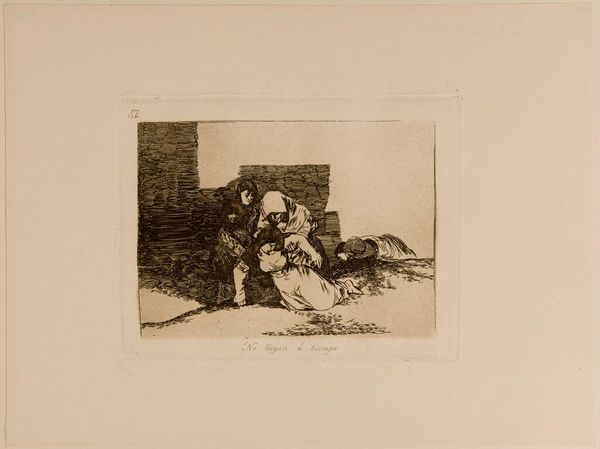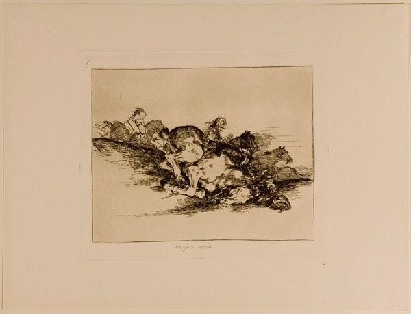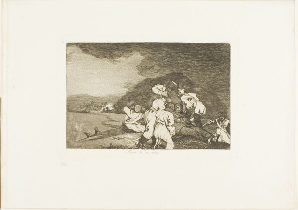 Editor: This etching by Goya, "They Do Not Agree," plunges us into the chaos of conflict. The composition feels incredibly charged. How do you interpret the social commentary Goya might be making here? Curator: Goya’s Disasters of War series, including this plate, directly confronts the horrors of the Peninsular War. Consider how the print challenges heroic depictions of conflict prevalent at the time. Editor: It seems to invert that tradition. What role do you think the printing medium played in disseminating these views? Curator: Etchings allowed for wider distribution, bringing the brutal realities of war to a broader public and shaping opinions about the conflict. Have our museums today learned from the past when showcasing artworks focused on conflicts? Editor: It’s fascinating to consider the impact of Goya's work on public perception. I appreciate understanding it in this historical context. Curator: Indeed, understanding the socio-political climate illuminates Goya’s powerful message, and how art can influence and reflect societal attitudes toward conflict and power.