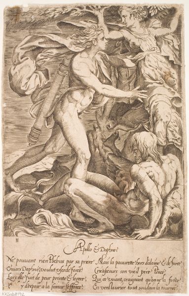 Curator: Amico Aspertini's "Bacchanalian Scene," created between 1520 and 1535, showcases the artist’s deft handling of ink and charcoal. Its present location is the Metropolitan Museum of Art. Editor: Woah, chaos! It's like everyone just gave up on standing up straight. You've got the full spectrum here: standing, sitting, sprawled out, being held up by someone else. Curator: Indeed. The composition adheres to Mannerist principles through its complex figuration. Note how the serpentine figures intertwine, creating a sense of dynamic instability. It's far removed from High Renaissance ideals of balanced symmetry. Editor: Instability is putting it mildly! Look at that dude slumped over the side like he’s auditioning for a Renaissance version of Weekend at Bernie’s. I almost expect someone to try propping him up with a wine glass. There is a somber figure who’s facing away on the bottom left that gives this frenetic party a slightly morose note. Curator: The narrative’s ambiguity is another key characteristic. While identified as a bacchanal—associated with Bacchus, the Roman god of wine—the emotional register lacks simple celebration. There are gestures suggesting conflict or mourning amid revelry. Editor: That explains it! Everyone's either blissed out, passed out, or bummed out they aren’t. You see these kinds of scenes and it makes you wonder if everyone back then was as wasted as they seemed to be in the paintings. It seems to say, "Wine: fun for some, a really long nap for others." Curator: Let’s appreciate the artist’s graphic technique; the dynamic cross-hatching in the shading enhances the figures’ volume, giving them solidity despite the frenzied poses. Aspertini masterfully plays with light and shadow to deepen the dramatic intensity. Editor: Okay, art-speak aside, it does kind of make you want a nap and a glass of wine. Maybe not at the same time, to avoid becoming one of Aspertini's subjects. Curator: A suitable perspective. Viewing art requires empathy; now, how will viewers interpret such emotional intensity today? Editor: Well, maybe this serves as a kind reminder: everything in moderation, even celebrating! Especially celebrating, perhaps.