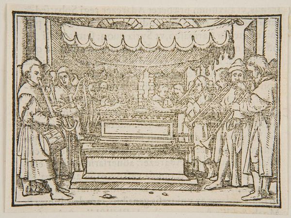 Editor: This is Hans Holbein the Younger's "1 Kings XVIII," and the stark black and white contrasts are really striking. What can you tell me about it? Curator: I see a powerful statement on the means of religious production. The woodcut, a relatively accessible medium, disseminates a biblical narrative. How does the print medium influence access to religious imagery and potentially challenge established church authority? Editor: That's a great point! Thinking about the printmaking process really reframes the image. Curator: Exactly! It moves beyond just the depiction of the scene to consider the labor and accessibility that shapes its meaning. Editor: Thanks! I'll definitely consider the medium in future analyses.