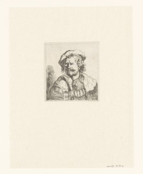 Curator: Here we have a portrait of Jean Baptiste Poquelin Molière, rendered between 1841 and 1885, currently held in the Rijksmuseum collection. It’s rendered in pen and pencil on paper. Editor: My first thought is that this rendering, almost a sketch really, feels somehow both immediate and timeless. There’s a delicate quality in the linework, creating an image that’s remarkably lifelike, while still remaining suggestive of a larger historical presence. Curator: Absolutely. The medium itself—pencil and ink on paper—speaks to its potential function. Was this preparatory work for a larger project? A study? Or perhaps it stands as its own completed object, a commodifiable portrait. Editor: That laurel wreath is really quite telling. We immediately associate the symbol with Apollo and artistic achievement, explicitly tying Molière to a classical tradition and conferring upon him a status equivalent to the great poets and playwrights of antiquity. Curator: And that begs the question, how much does the availability of paper impact the artist’s decision-making process. Also, who had access to such materials during this period, and how might their patronage have influenced the portrayal? These are material and socioeconomic factors. Editor: Consider also that while we are clearly in the 19th century given the dating, Molière was, of course, a figure of the 17th century. There's a deliberate harkening back to an earlier era and an aesthetic ideal associated with it. A desire for legitimacy through historical mirroring, if you will. The image-makers of the 1800s saw something timeless and valuable in him. Curator: Yes, the availability and production of affordable paper surely played a role in circulating these images, solidifying Molière's cultural legacy. But to your point, who commissioned it, who consumed it, and what was its intended function in the burgeoning print market? Editor: Well, looking at it now, I'm struck by how a simple portrait sketch can become such a loaded vessel for cultural memory and symbolic weight. Curator: It's a testament to how seemingly simple materials, like paper and pencil, can be leveraged to propagate ideas. A small sketch holds such a potent historical perspective, offering insights into artistic production.