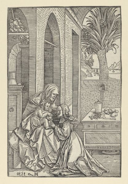 Albrecht Altdorfer created this engraving, titled "Praying Cleric Before Mary and Child", sometime in the early 16th century. The image reflects the religious and social hierarchies of the time. Mary, as the mother of Jesus, sits enthroned, holding her child. Her serene and detached expression contrasts with the cleric kneeling before her. This juxtaposition underscores the divine status of Mary and Jesus in relation to earthly supplicants, as well as the power of the church. The cleric’s act of kneeling symbolizes humility and reverence, reinforcing the societal expectation of deference to religious authority. In the background, a battle rages, a reminder of the ever-present conflicts of the era. Altdorfer masterfully uses the detailed background to suggest the broader social and political contexts that permeate even the most intimate and spiritual moments. The image serves as a reminder of the intricate dance between faith, power, and the human condition during a period of religious and social upheaval.