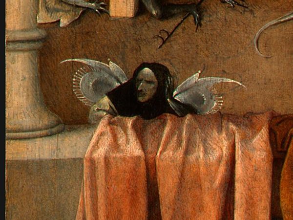 Editor: This is Caravaggio's "Jupiter, Neptune, and Pluto," painted in 1597 as a ceiling fresco. What strikes me is the dynamism, how all the figures are contorted, practically spiraling around this central orb. How do you interpret this unusual composition? Curator: Indeed. The composition presents an interesting problem of representation, a tondo almost literally bursting forth from the constraints of the architecture. The foreshortening is aggressively displayed, forcing a consideration of the planar relationships at play. Do you find the rendering of light effective in creating depth, particularly the dramatic shadows defining muscular forms? Editor: Absolutely, the light emphasizes the volume. It is quite directional and gives these figures a real sense of heft. It's almost sculptural. But, formally, the upward thrust and rotation feel somewhat unsettling. Is that intentional, or is there another visual device that brings balance? Curator: Note that Caravaggio uses an economy of compositional devices. What seems like a maelstrom of limbs can also be reduced to three individual poses, or gestures. See how they radiate around and, to a certain degree, echo the shape of that orb? That repetition provides structure, a sort of visual grammar to the overall design. Editor: Ah, I see it now. So even amidst the apparent chaos, there's a definite underlying order based on line, form, and repetition. This close reading truly enhances one’s understanding beyond subject matter. Curator: Precisely, by emphasizing structural organization, we identify inherent coherence in seemingly chaotic visual arrangements, as well as see art-making as the application of theoretical concepts. I am glad you understand, for it serves as an invaluable analytic lens.