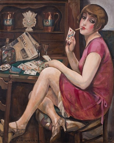 Haddon Hubbard Sundblom painted "How Little She Really Understands Herself," of indeterminate date, using oil on canvas. The composition centers on a young girl in a private moment, softly lit against a dark background, which creates an intimate viewing experience. Sundblom’s use of light and shadow, the soft, diffused lighting, accentuates the texture of the girl's skin, her dress, and the pages of her diary. This is contrasted by a concentrated focus on her facial expression, inviting questions about the nature of self-awareness and representation. Structurally, the painting suggests a tension between interior thoughts and external appearance, underscored by the visible diary, a literary device which became popular in the late 19th and early 20th century. Sundblom highlights the themes of adolescence and identity. The girl's thoughtful posture is emphasized, but the truth is that there are as many subjective "truths" as there are people to perceive them. Her pensive posture, framed within the intimate setting of her room, raises broader questions about privacy, perception, and the construction of the self. Ultimately, this painting functions as an artifact of cultural codes, illustrating that art is not just an aesthetic object, but a space where identity, representation, and subjective experience intersect.