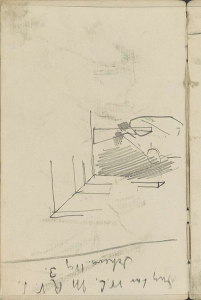 Editor: This rather ghostly image, a drawing, seems like an ephemeral glance at a building. Curator: Indeed. This is "Gevel met een raam"—"Facade with a Window"—created with pencil by George Hendrik Breitner between 1881 and 1883. Currently, it resides in the Rijksmuseum collection. There's a palpable realism, despite its sketch-like quality. Editor: It's very immediate, raw. I’m drawn to the apparent lack of labor; it seems dashed off, almost a marginalia on a larger page. What kind of statement is Breitner making by rendering such a mundane scene in such a stark way? Curator: Consider the tonal range achieved with what is, ostensibly, simple pencil work. The use of light and shadow defines the facade, and how the implied plane emphasizes geometrical elements of the architectural details. Observe the lines; each seems perfectly balanced. Editor: Balance isn't the first thing I notice; it's the texture. I wonder about the specific kind of pencil used, the tooth of the paper... it gives a tangible sense of the artist's hand, and the working class materials that defined many public constructions. Was it common to memorialize everyday labor so directly? Curator: Breitner's realist lens elevated the ordinary. There are clear art historical precedents when studying Realism. In this sense, the facade becomes less about the laborers themselves and more about a type, a symbol that reveals Breitner's vision of the cityscape. The lack of overt finish or flourish further abstracts, leading viewers to a core set of signifiers that speak of form and depth. Editor: And to the means and circumstances of its construction—literally and figuratively! Curator: Precisely. And it provides a remarkable case study in artistic vision captured with fundamental techniques. Editor: A quick and perhaps not quite so fleeting gesture, that captures so much.