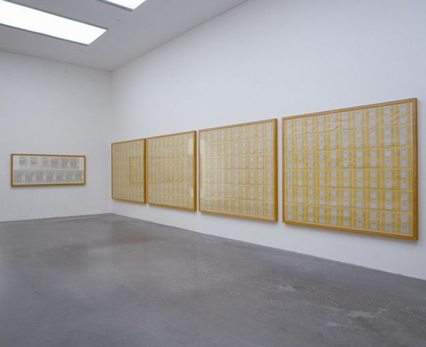 Curator: This is "Stanza, Giallo Oro," an acrylic painting created by Ettore Spalletti in 1994. Editor: It's…striking. A trio of pale yellow squares hanging flush to the wall. The simplicity is almost disarming, yet there's a tangible calmness about it. Curator: Spalletti's work often explores the intersection of sculpture and painting. Here, the 'stanza,' or room, in the title points towards his interest in how the artwork defines and transforms the space it occupies. Giallo Oro, 'golden yellow', seems apt considering the way this color shifts depending on the ambient light, imbuing the space with a certain glow. We should keep in mind that color, like everything, doesn't exist in a vacuum but in its particular surroundings. Editor: The subtle variation in the tone of the yellow from one square to the next also grabs attention. It avoids pure uniformity and invites your eye to move slowly across the composition. I’m drawn to how the individual panels each assert their discrete physicality while still behaving as parts of the whole, generating a powerful rhythmic sequence. Curator: Considering his roots in the Abruzzo region of Italy, and its deep connection to ancient Mediterranean cultures, there’s an underlying suggestion that these blocks might symbolize altars or other sacred spaces. These works are, above all, attempts at elevating the art object from pure form to instruments of spirituality. Editor: So you’re suggesting these yellows aren't merely surface treatment but, in fact, function like an optical system geared towards producing heightened awareness and encouraging introspection. Curator: Precisely. When placed in conversation with the room, these blocks can take on diverse meanings for varied audiences. Editor: I had originally viewed it through the prism of minimalist hard-edge abstraction and geometric arrangements; that context brings a lot of depth to the work. I suppose this confirms my suspicion that beauty resides in this fascinating relationship between line, color, form, and context. Curator: And in the way this interplay evokes thought and feeling in the viewer. Editor: Absolutely.
