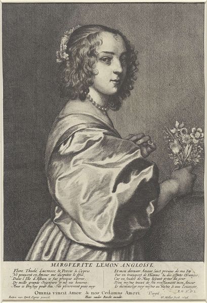 Adriaen Lommelin created this portrait of Margareta Lemon using engraving techniques. Lommelin was part of the Flemish Baroque movement, a period marked by dramatic, expressive art often commissioned by the church and aristocracy. Here, Lemon is depicted with dignity, holding flowers, adorned with pearls and blossoms in her hair; an idealized vision of feminine beauty and purity. Yet, to look at the portrait of Lemon is also to see the power dynamics inherent in the relationship between artist and sitter, between the male gaze and female representation. Lemon was the muse of painter Anthony van Dyck. Portraits of women during this time often served to immortalize their beauty but also to define their roles within a patriarchal society. Do you think this portrait challenges or reinforces societal norms? What can it tell us about the agency and identity of women in the 17th century?