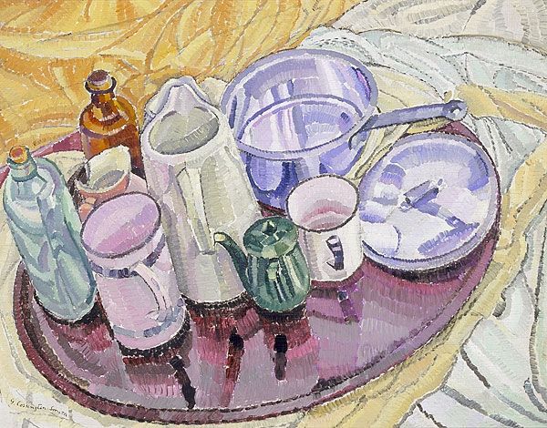 Curator: Welcome. We're looking at Boris Kustodiev’s “Sweets. Still Life”, rendered in oil paint. Although undated, its style strongly aligns with romanticism, a nostalgic aesthetic that valued emotion and idealized beauty. Editor: Ooh, dreamy decadence! The way that glossy, dark cherry perches on top of that creamy slice, it's pure temptation on a silver platter. Makes me wanna reach in and snag it! Curator: Romanticism's sweetness comes from historical roots too, because food, like these confections, served as symbols of domesticity, aspiration, and even social class. Still lifes offered a controlled reflection of societal desires, fantasies presented with elegance and taste. Editor: Makes sense. These aren’t just sweets. They are little monuments of perfectly swirled cream and precisely layered cake. I can almost taste that sugary nostalgia you're talking about. The blue curtain behind them amplifies that dreaminess somehow. Curator: Yes, that velvety drape hints at a theatrical staging. Kustodiev uses deep blues and soft whites to manipulate how we relate to excess. We get caught between the lure of treats and that vague sense that something else is happening, culturally. Editor: I like that interpretation. It is like the artist is whispering "eat me," while simultaneously asking, "but at what cost?". It’s definitely more complex than just pretty pastries on a table. It's a slice of societal commentary, served à la mode! Curator: Exactly, and considering the period in which Kustodiev painted, Russia was also undergoing tumultuous change, meaning even simple domestic images can point to broader cultural shifts. Editor: Knowing that adds an interesting layer. So what starts as visual indulgence suddenly becomes an invitation to delve into the bigger, historical picture. Makes those sugary treats way more compelling. Curator: It truly encapsulates how visual culture operates, by enticing audiences into complex networks of power and cultural value through aesthetics. Editor: I am off to grab a dessert!