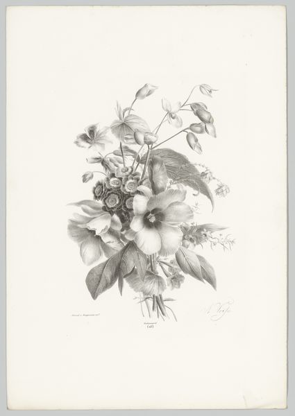 Pierre François Legrand created this print of a rose, likely in the late 18th or early 19th century. Botanical illustration flourished in this period, reflecting both scientific curiosity and the aesthetic sensibilities of the Enlightenment. The image itself speaks to a culture deeply interested in classifying and understanding the natural world. Consider the level of detail, the almost clinical way the rose is presented. This wasn't just about creating something beautiful; it was about documenting and categorizing, mirroring the scientific ambitions of the time. These kinds of images were often commissioned by wealthy patrons or scientific institutions, reflecting the social and economic structures that supported such endeavors. To truly understand this print, we'd need to delve into the history of botany, the economics of printmaking, and the social networks that connected artists, scientists, and patrons. The meaning of this image isn't just in the rose itself, but in the world that created and consumed it.