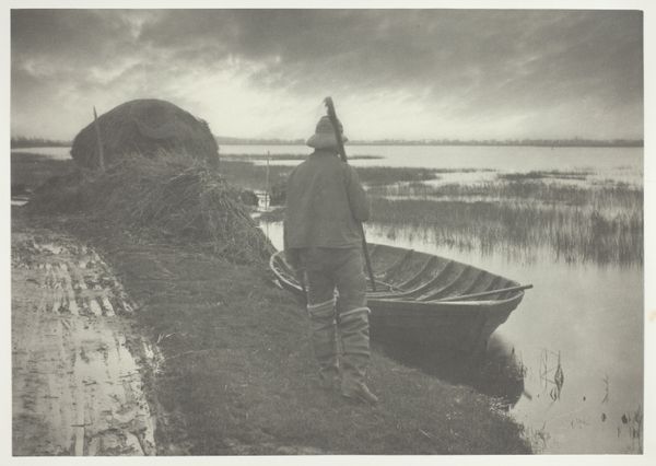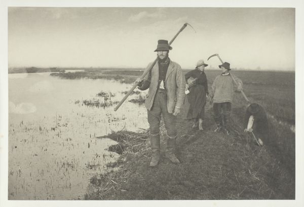 Peter Henry Emerson made this photograph, "Poling the Marsh Hay," using a photographic process involving a glass negative. The print, made from that negative, results in a velvety, gray surface, an effect of the light-sensitive emulsion. Emerson was interested in capturing what he considered the authentic lives of rural laborers. The scene depicts workers gathering marsh hay, likely for animal bedding or thatching. Their labor is physically demanding, requiring them to navigate the marshy landscape, cut the hay, and transport it. The photograph's focus on these workers elevates their status, even as it records their toil. Emerson's choice of photography as a medium was itself significant. Photography, as a relatively new technology, offered a seemingly objective way to document the world. Yet, Emerson’s artistic choices, from composition to printing techniques, demonstrate that photography, like any medium, is shaped by the artist's perspective. It's a powerful reminder that even documentary images are constructions, imbued with social and cultural significance.