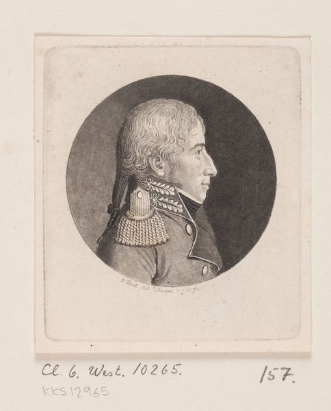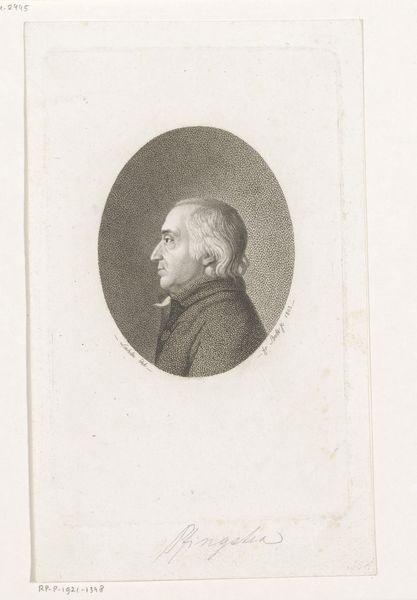 This engraving of an unknown man was made by Andreas Flint, likely in the early 19th century. It's made from a metal plate, carefully incised with lines to create the portrait. Engraving is an intaglio process, meaning the image is cut into the surface. The plate is inked, then wiped clean, leaving ink only in the incised lines. When paper is pressed against the plate, the image is transferred. The fine lines and subtle shading show the engraver's skill, with the subject's likeness achieved through labor-intensive mark-making, each varying in depth and width. The proliferation of prints in this era, often portraits, reflects a growing middle class eager to participate in cultural trends, and portraits like this one were relatively affordable ways for individuals to assert their status. Consider the labor and skill involved in creating such a detailed image, and the broader social context of its production, when thinking about the full meaning of this portrait.