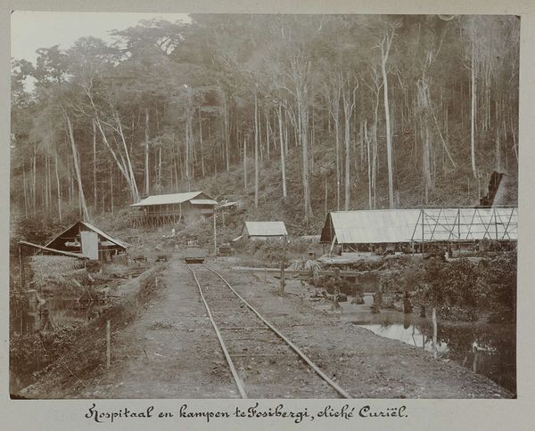 Editor: So, this gelatin-silver print by Augusta Curiel, "Grondvervoer te Fosibergi," probably taken between 1900 and 1913… it strikes me as a very sobering, almost melancholic image. The dense jungle pressing in on the tiny train. What stories do you think it holds? Curator: Oh, I love that word "melancholic" for this! It absolutely captures the sense of human endeavor, represented by that little train chugging along, pitted against the overwhelming force of nature. Think about the context, though. This is a photograph, a document of sorts, likely commissioned to show progress. How much is hidden beneath that veneer? Editor: Hidden, like what? I guess I hadn’t really considered the colonial aspect of it all… Curator: Precisely! Imagine the lives impacted, the resources extracted. The photograph shows a track being laid. The landscape is ravaged by tree felling on the left, hinting at deeper, perhaps darker, stories. What is being carried on that little train? And at what cost? That interplay, between intended narrative and the whispers of untold stories, fascinates me. Editor: It’s almost… a photograph hiding a history painting. Is that right? Like, we see the progress but feel the impact. Curator: Precisely. And the sharp contrast…the dark forest swallowing the little train. Almost a memento mori of sorts. Curiel's eye sees more than she perhaps even intended, and allows us to glimpse beyond. Editor: Wow, I'll definitely never look at historical photographs the same way again! It's like peeling back layers of time and meaning. Curator: Indeed, the photograph is not only what it shows, but what it doesn't.