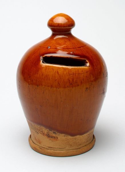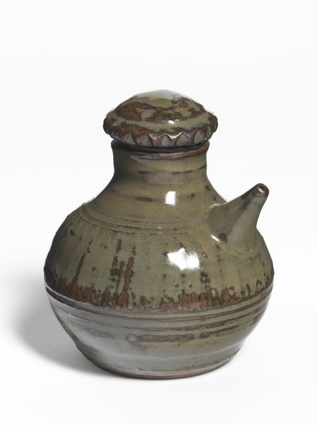 Curator: This is William Marshall's "Pot," dimensions 220 x 215 x 215 mm, currently held in the Tate Collections. Editor: It feels very grounded, earthy, but also domestic. The brown glaze makes me think of hearth and home. Curator: Absolutely. Marshall, born in 1923, was deeply influenced by Bernard Leach and the studio pottery movement, which advocated for a return to craft values. It's a rejection of mass production, a statement of identity. Editor: I see in its form echoes of ancient storage vessels, the kind used to hold grains, wine, or oil. Curator: Yes, that echoes a kind of sustainability, of enduring traditions, reflecting a pre-industrial sensibility that is still relevant today, in the face of consumerism and climate change. Editor: I agree. This pot feels symbolic of simpler times. It’s a connection to the past, and, perhaps, to a more equitable future.