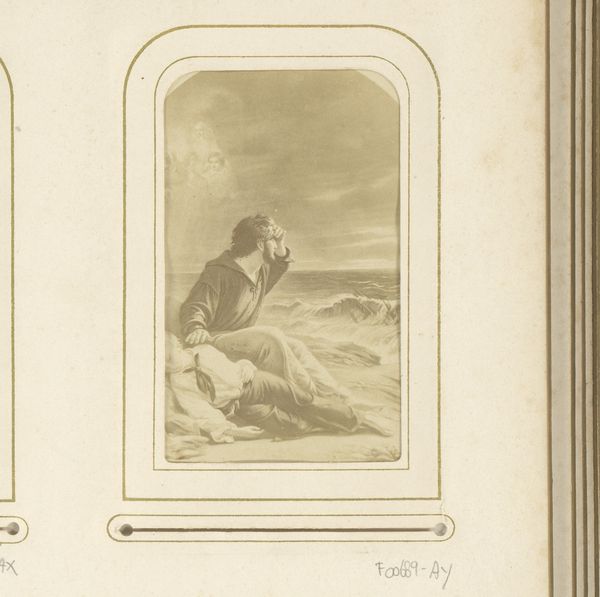 This is an undated photograph reproduction of "The Sailor Boy's Dream of Home" by Thomas Brooks. It offers us a window into 19th-century sentimental depictions of maritime life. The image captures two figures on a shore: an older sailor gazing out at the turbulent sea, and a younger boy asleep at his side. This juxtaposition evokes a sense of protection and vulnerability against the vastness and unpredictability of the ocean. Consider the romanticized, yet harsh reality of seafaring during this era, where young boys were often employed on ships, facing immense hardships. The "dream of home" is a powerful theme. It speaks to the longing for safety, family, and belonging, ideals particularly poignant in the context of the sailors' lives marked by constant movement and uncertainty. The emotional core of the piece resonates across time, reminding us of the universal human desire for a place to call home.