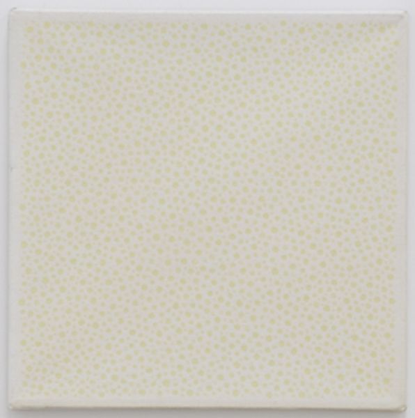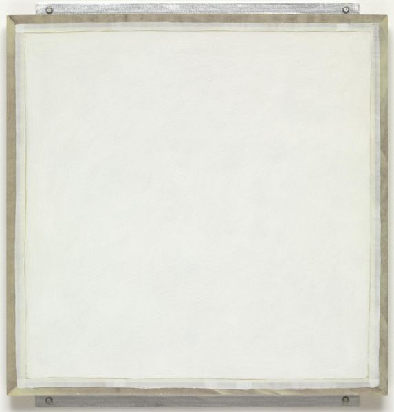 Curator: Robert Ryman's work is often associated with minimalism and conceptual art. Here we see one of his "Untitled (from Seven Aquatints)" prints, rendered in aquatint and embodying his sustained investigation of materials and process. Editor: First impression? It's a pale yellow square trying to escape from a larger, almost identical circle. It's quiet. Like a visual haiku, barely there but making you notice everything around it. Curator: Ryman's prints can be deceptive. His engagement with materials speaks volumes about the politics of perception. Consider that Ryman was aligned with movements seeking to critique artistic conventions and redefine the very concept of art in society. Editor: Exactly! I keep circling back to that quietness, and maybe there’s something powerful about daring to be quiet, right? In a world demanding loudness and spectacle, a work like this challenges you to actually *see*. The faint textures…they invite your own reflection and interpretation. Curator: The aquatint medium reinforces this delicate balance. As a printmaking technique involving tonal variations rather than linear strokes, it resonates with Ryman’s interest in how subtle nuances influence the viewer's experience. It removes overt gestural brushstrokes but allows minute differences in tone. Editor: I wonder what Ryman might say about how his art functions now, especially surrounded by constant visual noise. Do you think his works intended to provoke or offer a sort of…palate cleanser for the eyes? Curator: A crucial point. Given his radical, groundbreaking work, the social critique in his work is subtle but definitely intended to shake things up. Editor: Okay, well, shaking up the system one gentle, barely-there shade of yellow at a time. Curator: It makes you wonder about the history embedded in simplicity. Ryman challenges our assumptions about what art can or should be. Editor: And it almost whispers its rebellion, like a secret known only to the attentive observer. I will never look at yellow the same way.
