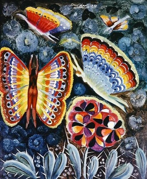 Nils Dardel made this tempera painting called Gräshoppan in 1931, and it’s a wild ride of color and form. The paint feels thin, almost translucent in places, which gives the whole scene a dreamy, floaty vibe. Dardel isn't trying to hide his process; you can see the strokes, the way he builds up the colors layer by layer. Take a look at the wings of that grasshopper-creature. The way he blends those yellows, oranges, and blues, it's not about realism, it's about creating a mood, a feeling of otherworldly beauty. And the figure sprawled on the ground below? Are they in distress or just chilling out? It's this ambiguity that makes the piece so compelling. Dardel reminds me of other artists who weren't afraid to mix the surreal with the everyday, like maybe a Frida Kahlo or a Marc Chagall. It's like he's saying, "Hey, life is weird, art should be too."