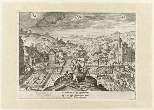 This engraving, “Offer van Noach,” was created by Philips Galle in the late 16th century, offering us a vision of a post-diluvian world. Galle uses the detailed lines of the engraving to create a scene of both destruction and renewal. Notice how Galle composes the scene with a panoramic view, contrasting the foreground’s activity with the background’s ruined cityscape. The artist uses scale and perspective to guide our eyes from the immediate act of sacrifice to the distant, crumbling monuments. The formal elements here convey a sense of transition. Galle's organization presents a world in flux, where old structures collapse and new beginnings are forged. The very act of offering, framed against a backdrop of architectural decay, speaks to a re-evaluation of values. The ruins and the rainbow symbolize a break with the past and a covenant for the future. The stark lines and detailed rendering give form to the weight of history.