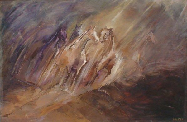 This vibrant landscape was painted by Minas Avetisyan, an Armenian artist known for his expressive use of color and bold brushwork. He used traditional oil paints to bring this scene to life. The materiality of oil paint is key to understanding this piece. Look closely, and you'll see how Avetisyan layered the paint, creating a textured surface that adds depth and dimension to the mountains and valleys. The thick application of paint captures the intensity of the Armenian landscape, reflecting the artist’s emotional connection to his homeland. Avetisyan was deeply influenced by Armenian folk art and Byzantine mosaics, artistic practices and traditions often overlooked by mainstream art history. His art was rooted in social and cultural context, and his paintings often reflected the struggles and triumphs of the Armenian people. In this landscape, we see not just a depiction of nature, but a celebration of the land and its cultural significance. The bright colors and dynamic composition convey a sense of energy and resilience, inviting us to appreciate the beauty and enduring spirit of Armenia.