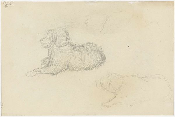 Nicolaes Berchem made this drawing of two sleeping dogs in the Netherlands, sometime in the mid-17th century. While seemingly a simple animal study, this work reflects the rising fashion for pastoral scenes, which were in turn closely linked to emerging social and economic structures. The Dutch Golden Age saw an unprecedented rise in urban wealth and a corresponding desire amongst the newly rich merchant class for country estates. Artists like Berchem catered to this taste by producing idealized images of rural life. These images often featured carefully arranged landscapes populated with placid animals and picturesque peasants, subtly reinforcing notions of social order. In reality, the Dutch countryside was changing rapidly, with new agricultural techniques leading to increased productivity and dispossession for some rural workers. By examining estate records, agricultural reports, and other archival sources, we can understand how Berchem's seemingly innocuous drawing reflects the complex social and economic transformations of the time, reminding us that even the most bucolic images are shaped by social context.