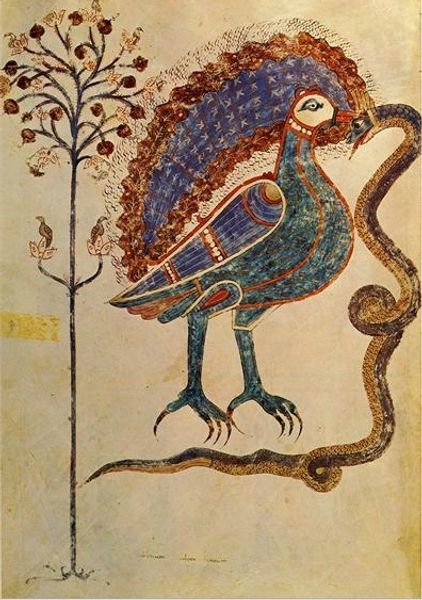Editor: This is Folio 176r from the Beato de Gerona, created around 975 using tempera. What strikes me is how the figures seem to float against the background, these fantastical creatures rendered with such vibrant, yet somehow constrained energy. What do you see in this piece? Curator: What I see is a powerful example of how marginalized voices preserved and reinterpreted dominant narratives. The Beato de Gerona, a commentary on the Book of Revelation, wasn't just passively copying scripture. Think about who was producing these illuminated manuscripts: often women, like the artist Ende, working within a patriarchal structure. Editor: So, you're saying Ende might have been subtly challenging the religious narrative? How so? Curator: Consider the symbolic choices: the vibrant colors, the stylized lines, the inclusion of these hybrid creatures. These deviate significantly from strict representational art. Could these stylistic choices represent a subversion of power? A way of encoding different interpretations within a seemingly orthodox framework? How might these symbols resonate differently within a female context? Editor: I never thought about it that way. I was focused on the style, but you're right, these choices are deliberate. Curator: Exactly. By examining the socio-political context and the role of the artists, we can see how these illuminated manuscripts function as sites of negotiation and potential resistance. The line work that you described as constrained could be the visual evidence of that constraint—how women may have worked around such expectations to still represent themselves. What do you think now about your initial impressions? Editor: Now I see it less as just floating, and more about subtly pushing back. It definitely makes you reconsider the figures not as passively placed on the background, but purposefully there as the resistance to the word itself. Thank you! Curator: My pleasure. It's in these intersections of art, history, and social context that the true power of these works reveals itself.