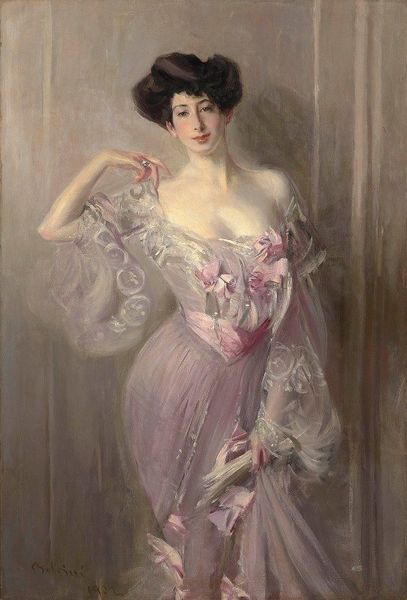 Painted in 1887, John Singer Sargent's "Madame Paul Poirson" is an oil on canvas whose muted palette and sophisticated composition invite contemplation on the visual and social codes of its time. The arrangement of forms—the figure set against a hazy blue backdrop—creates a study in contrasts. The soft, diffused light accentuates the texture of Madame Poirson’s dress, its intricate lace and subtle gradations of white mirroring the delicate balance between revelation and concealment that defined femininity. Sargent masterfully uses line to both define and dissolve form, capturing a likeness, and also conveying something of the sitter's social standing. The portrait, therefore, is not just a rendering of an individual but an exploration of the structures of representation itself. The gaze is directed at us, a question of what we see and how we interpret the signs before us. The artist encourages us to question the artifice and underlying constructs that shape our perceptions, reminding us that art is always an act of mediation rather than a transparent window onto the world.