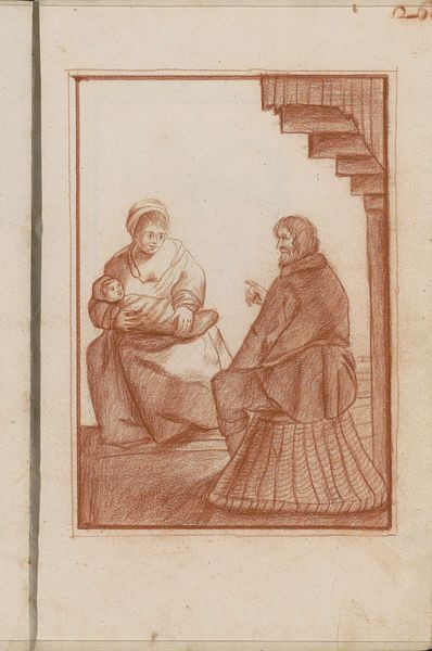 Robert Smirke composed this drawing, "Capulet Railing at his Daughter, Juliet," using brown ink and wash to convey a scene of intense familial conflict. The composition divides the space into distinct zones: the pleading Juliet in the foreground, the looming figure of Capulet, and the more distant observers on the left. Smirke's lines are economical yet evocative, particularly in rendering Capulet's harsh gesture of rejection and Juliet's pose of supplication. The use of brown wash gives the scene a somber, almost oppressive atmosphere, highlighting the emotional weight of the moment. The vertical lines in the background, like prison bars, create a sense of enclosure and entrapment. In this scene, Smirke captures the tension between individual will and societal expectation, mirroring the play's larger exploration of fate, defiance, and the tragic consequences of intransigence. The artist employs a structured arrangement of figures and space to underscore the themes of confinement and confrontation.