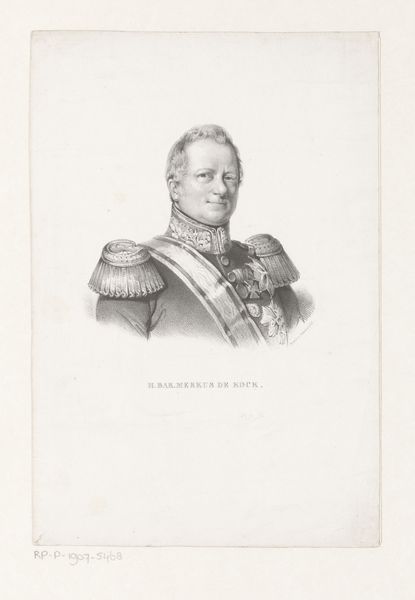 Editor: So, here we have a portrait of Willem II, King of the Netherlands, dated between 1849 and 1880, by Leonard de Koningh. It's a print, based on a drawing in graphite or pencil. The figure is very stately. I notice he’s surrounded by symbols of royalty, but the drawing itself feels very… reserved. What do you see in this piece? Curator: I see a very carefully constructed image intended for public consumption. It's not just a portrait; it's a piece of political branding. Think about the period - the revolutions of 1848 were still fresh in people’s minds. Images of rulers became incredibly important tools for projecting power and stability, or trying to appear as if nothing would ever change. Editor: Interesting. So the seemingly restrained style might actually be part of a larger political message? Curator: Exactly. Consider the symbolism surrounding him—the crown, the decorations, his military attire. They all contribute to this carefully curated image of monarchy. What about the text underneath? Does that detail any biographical information, or titles? Editor: Yes, it lists his various titles - King of the Netherlands, Prince of Orange-Nassau. It almost reads like official documentation, confirming the image's purpose. Curator: Precisely! The portrait functions as a type of legitimization, reinforcing his claim to power amidst shifting social and political landscapes. It makes me think about the evolving role of the monarchy and how images are wielded to shape public perception. Editor: I never thought about portraiture this way, as such an intentional communication tool. Curator: Art provides crucial primary evidence from the past; in this case it shows how political figures attempted to control how they were seen, it encourages me to research into the history books. Editor: Thanks; thinking about this print in this historical context brings it alive for me in a new way. I'll never look at a royal portrait the same again!
