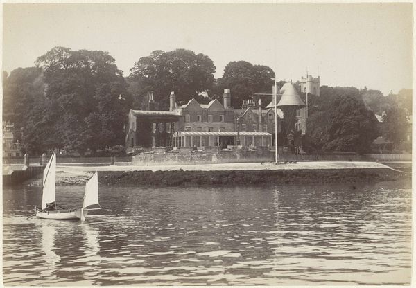 Curator: Before us we have a photograph titled "Maison du Seigneur bij het Klein Trianon in de tuinen van Versailles" by X phot., likely taken between 1887 and 1900. Editor: My immediate response is one of stillness. The sepia tones lend a certain melancholy, and the reflection in the water doubles that sense of quietude. It feels almost staged, perfectly poised. Curator: Indeed. The photograph's composition directs the eye methodically: the gentle curve of the pond in the foreground leads towards the architectural structure, its form being mirrored perfectly in the water. It is a superb manipulation of form. Editor: Yet, who lived there? How did their lived experiences shape the gardens? How do those social markers influence our interpretation now? I wonder, does the apparent tranquility belie a history of privilege and exclusion? What of the unacknowledged labour behind such elaborate displays of wealth? Curator: From a formal standpoint, we can examine the interplay between the soft, organic shapes of the trees and the rigid, geometric forms of the building. The photographer plays with light and shadow, highlighting the texture of the thatched roof. The use of timber and the veranda-style architecture introduces an element of rusticity. Editor: This is where form intersects with the cultural and social—the *idea* of rusticity was idealized amongst the elite. Consider Marie Antoinette’s hamlet: How was "nature" aestheticized? What societal narratives did these built environments reinforce about the social hierarchy? What messages about class, gender, and race were implicit? Curator: To look closer at this through its aesthetic merits, we can acknowledge that the photograph displays incredible depth, especially considering the limitations of photography at the time. This visual complexity speaks to the artistic merit regardless of its historical implications. Editor: Yes, and those formal choices—the framing, the light—serve specific narratives that both reflect and reinforce those times, too. Curator: Considering this interplay enriches our analysis, doesn't it? Editor: Absolutely. We’ve barely scratched the surface regarding Versailles, I hope this prompts others to look deeper.
