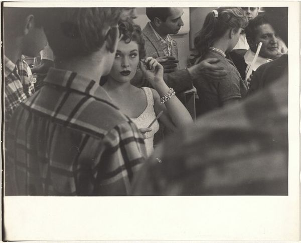Larry Fink made this black and white photograph, “Peter Beard and Friends, East Hampton, New York,” in an unknown year. It captures a moment of apparent conviviality in a social gathering. Fink’s work often explores social dynamics and class distinctions, and this image offers a glimpse into a specific cultural scene. East Hampton, part of the Hamptons, is known as a playground for the wealthy elite. The photograph documents that privileged milieu. What does this image tell us about that world? The figures cluster tightly, they are fashionable and self-assured, and they seem unconcerned with external pressures. But the setting is unglamorous, and the composition is off-kilter, which perhaps suggests an atmosphere of excess. To fully understand this photograph, one might research the social history of the Hamptons, the biography of Peter Beard, and the broader trends in American social life during the period the photograph was taken. As historians, we look to such details to understand art as a reflection of its time.