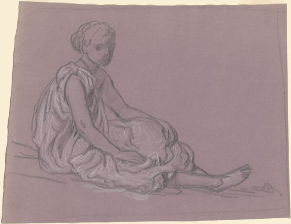 Here we see Jan Hulswit's drawing of a woman sitting on the ground, rendered in pencil. Notice how the artist uses the stark contrast of light and shadow to define form, creating depth and volume. The composition directs our gaze to the woman's face, which is softly lit, accentuating her thoughtful expression. The drawing is an exercise in the poetics of space, illustrating not just a figure but a way of being. Hulswit captures the essence of everyday existence, elevating the ordinary through careful observation and rendering. The woman, an archetype, becomes a symbol through the formal arrangement of lines and shading. The structure suggests a semiotic relationship between subject and space; the woman is grounded, literally and figuratively, suggesting a connection to nature and perhaps to labor. Hulswit invites us to consider the subtle narratives embedded in form and the quiet dignity of the subject.