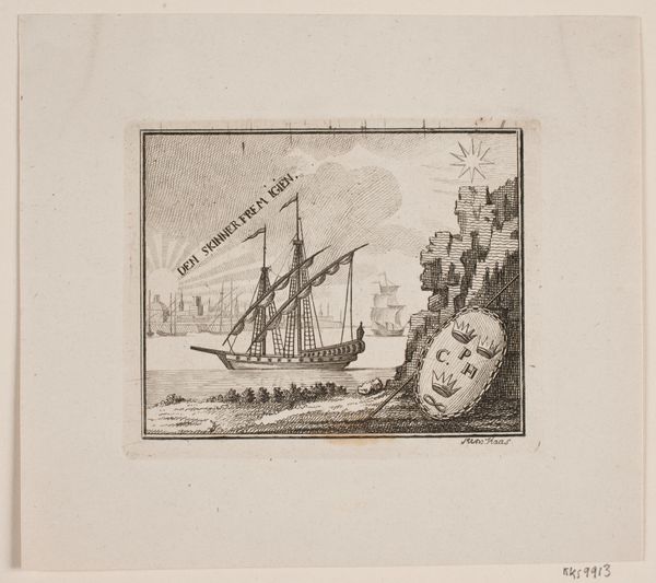 Editor: So, here we have J.F. Clemens' engraving, "Napoleon vejer menneskenes skæbne," placing Napoleon himself on this makeshift ship deck with a cannon in the background and he’s weighing human destiny, seemingly against his own military pursuits. What I immediately see is a very deliberate composition...the way the light and shadow play with each other using only engravings on paper...It's quite powerful! What do you notice, from your perspective? Curator: For me, it's all about the context of production here. Etchings like these were crucial tools of propaganda. They were easily reproduced and disseminated widely, shaping public opinion through readily accessible imagery. Notice how Napoleon is elevated, almost deified. The scales are the instrument that allows this single figure to alter production across his empire, a truly industrial revolution through military and imperial force. Editor: Propaganda, okay! So, the material—a print—becomes just as important as the image itself? It challenges the romantic notions of what Napoleon wanted his reign to be seen as. Curator: Absolutely! This wasn't about high art hanging in a palace. This was about controlling the means of visual production to disseminate power on a massive scale. It really forces you to confront how these seemingly simple materials become tools to reshape society. Consider also how different that would be if Napoleon commissioned massive sculptures of himself instead. The choice to disseminate the propaganda via paper would give his messages more reach. What impact do you think that might have had at the time? Editor: That is fascinating. It reframes the entire piece. I initially saw allegory, but you’ve shown me how understanding the means of production reveals Clemens’ intent to use Napoleon's image as more than just a symbol—as a carefully manufactured persona distributed to the masses through material processes. I'll never look at engravings the same way. Curator: Precisely! Examining art through the lens of materials and social context unlocks a whole new layer of meaning. These works can be reproduced an infinite amount of times! That should have us thinking critically.