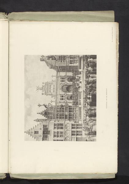 Editor: So, we're looking at a print, likely a photograph, titled "Westzijde van de kathedraal van Monreale," placing it sometime before 1886. It depicts the west side of the Monreale Cathedral in Sicily. The weathered stone and the way it's presented within this book give it a strong sense of historical weight. What jumps out at you when you look at this image? Curator: Well, instantly I consider the public role of architecture like this cathedral and its imagery. Religious institutions have historically wielded immense power, haven't they? How did showcasing architectural marvels such as this, through accessible mediums like photography and print, contribute to that power dynamic? Editor: That's a great question. I hadn’t thought about it in terms of power. So, the wide distribution of these images, they could control the narrative of its grandeur? Curator: Precisely. Think about who this image was intended for. Was it the local populace already familiar with the cathedral, or a more distant audience, perhaps a wealthy collector, or academic institutions? Its purpose dictates the reception. Were these images used as a display of power through documenting colonial architectural successes? Or possibly used in studies by historical researchers? It would all shape the interpretation. Editor: I see your point. The photograph as more than just documentation. It's an artifact embedded within layers of social context. What about the choice to show the *west* side specifically? Curator: Interesting observation! Churches in Europe face east. Why highlight the west side? Perhaps to display this western façade as the entry point, facing and thus welcoming Rome? Or is it simply that the Western facade displays key points for visual narrative or artistic features of architectural intention? This approach helps one begin to peel back layers of historical understanding and sociopolitical context. What do you make of the surrounding landscape and the angle? Editor: Now that you point that out, the orientation seems purposeful. I hadn’t even considered that this wasn’t just an objective architectural study. Thank you, it's fascinating to see how much context is embedded in what I initially perceived as a simple image! Curator: Exactly! That active questioning and historical diving reveals just that; its simplicity is deception. It leaves you wondering and inspired!
