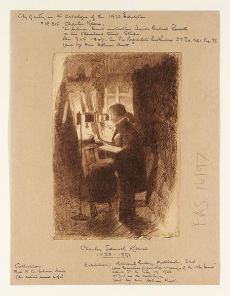 Auguste Danse created this etching, "Young Engraver at Work", in 1865. It offers a fascinating glimpse into the world of artistic production in 19th-century Belgium. The image shows a young man, presumably an apprentice, diligently working at his engraving desk. The tools of his trade are prominently displayed, emphasizing the skilled labor involved in creating art. Made during a period of increasing industrialization, the print subtly critiques the changing landscape of labor. The work asks us to consider the value of traditional craftsmanship in an era dominated by mass production. By focusing on the engraver's focused concentration and the technical aspects of his work, Danse elevates the status of the artisan. Further research into the economic conditions of the art world in 19th-century Belgium can shed light on the artist's social commentary.