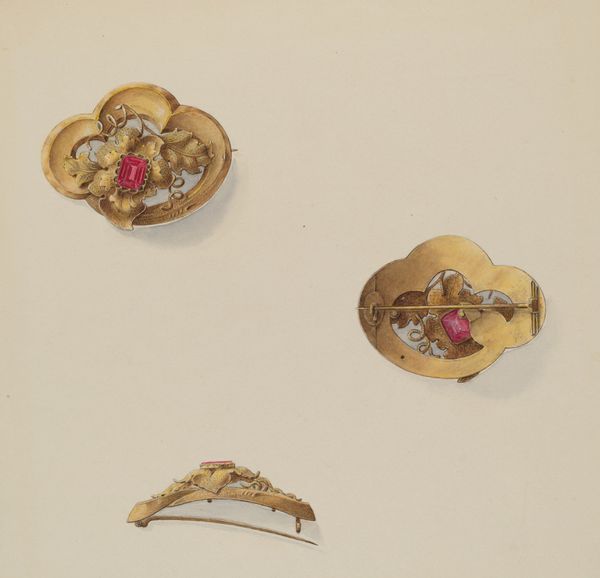 Lillian Hunter made this watercolor painting of a Memorial Ring. The central image, encased in an oval frame, depicts a scene reminiscent of classical mourning rituals, with draped figures surrounding what appears to be a graveside. The act of memorializing the dead through art and jewelry stretches back into antiquity. Think of ancient Roman cameos, where portraits of loved ones were immortalized in miniature. The ring format itself is significant; it is a circle, an emblem of eternity, of unending remembrance. It is interesting to notice how different cultures have used rings to keep those who have passed away close to them. A ring becomes a tangible symbol of affection and memory. What we see here, however, is not just a continuation of the past, but an evolution. The artist imbues the scene with a neoclassical sensibility, yet adapts it to her own time. So the cycle continues, looping us back to the ancient world even as it propels us forward.