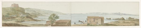 Editor: Here we have Louis Ducros’ "Havenhoofd van Napels, gezien vanaf de voet van de vuurtoren," a pencil drawing from 1778. There’s a quietness to this piece, a sense of everyday life captured in a quick sketch. How do you interpret this work, beyond it just being a landscape? Curator: What strikes me is not simply the depiction of Naples' harbor, but how it intersects with the burgeoning aesthetic of Neoclassicism and its implications for representing urban spaces. Ducros, in choosing this vantage point, seems to be engaging with Enlightenment ideals of order and clarity. How does the drawing’s composition reflect or challenge these ideals, do you think? Editor: I see the order, sure, in the linear perspective and the clear separation of planes. But the sketchiness, the lack of detail, almost undermines that sense of control. Curator: Precisely. And isn't that tension revealing? Consider Naples in 1778 - a city steeped in history but also facing socio-political unrest. Could Ducros be subtly commenting on the limitations of imposing an idealized order onto a complex reality? Is he showing us that a purely Neoclassical view neglects the lived experience of a city in flux? Editor: That’s a perspective I hadn't considered. I was so focused on the surface of the image. It makes me wonder about the people included. Are they just there to provide scale, or do they have another purpose? Curator: Think about who is represented, how they are positioned, and their relation to the architectural elements. These details can speak volumes about Ducros's own positionality and the power dynamics at play in representing the city. Editor: This drawing holds so much more than I initially realized! It's like peeling back layers of history and social commentary, just from looking closely at the composition and the artistic choices. Curator: Exactly! It's through these interrogations that we can unveil the complex narratives embedded within even the simplest-seeming landscape.