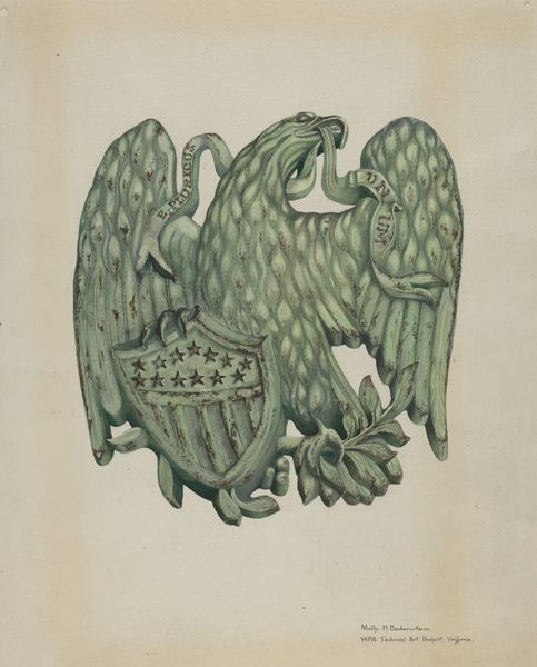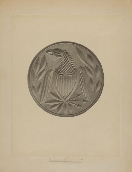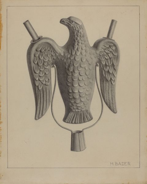 Rose Campbell-Gerke created this rendering of a firemark using graphite on paper. Campbell-Gerke was active in the first half of the twentieth century, a period when women artists navigated significant social and cultural shifts. Firemarks, like the one depicted here, were historically used to identify buildings insured by particular fire insurance companies. This image evokes questions about protection, security, and the role of institutions in safeguarding communities. The eagle, a symbol deeply embedded in national identity and power, becomes entwined with the more localized and personal concern of property protection. Consider the complexities inherent in symbols of power and protection. How do these symbols interact with individual experiences of safety and vulnerability? This piece invites us to reflect on the relationship between national identity, institutional support, and the tangible realities of everyday life.