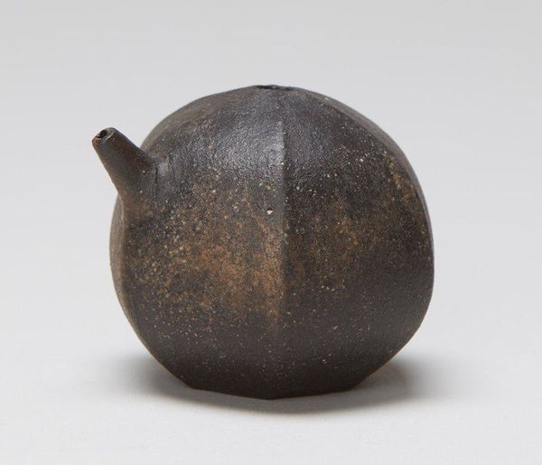 Editor: So, this is "(Round vase)" by Takeuchi Kimiaki, made around the late 20th century. It’s a ceramic piece, and there's something really grounded about it, maybe even austere? What draws your eye when you look at it? Curator: My immediate consideration lies with its formal elements. The piece exhibits a masterful manipulation of texture, transitioning from a subtly smooth lower section to a coarser upper. The simplicity of its form--essentially a sphere capped with a narrow cylinder--foregrounds this textural dichotomy. Editor: Texture is something I didn’t focus on at first glance, but it is important here! Do you think the artist was trying to convey a message or concept with these aesthetic decisions? Curator: It is likely the artist's primary concern was not explicitly conveying a 'message' per se, but rather exploring the inherent possibilities of the medium. The glaze, for example, does not simply coat the ceramic but seems integral to its very structure, altering the way light interacts with the object. The reduction firing might accentuate that as well. Does that clarify it somewhat? Editor: Definitely. So it's more about the process and materials dictating the aesthetic, than a pre-determined message being applied? I think I get it. Curator: Precisely. We must focus our attention on the interplay of form and material, and the manner in which they dictate the object's visual language. Editor: I learned something new. Thanks. Curator: Indeed. A rewarding exercise in formal appreciation.