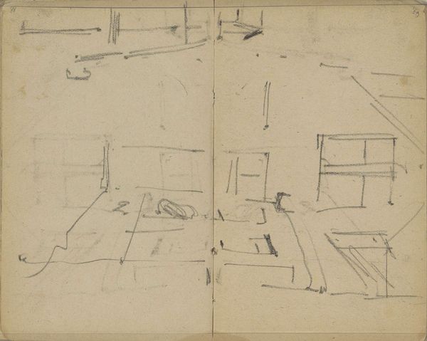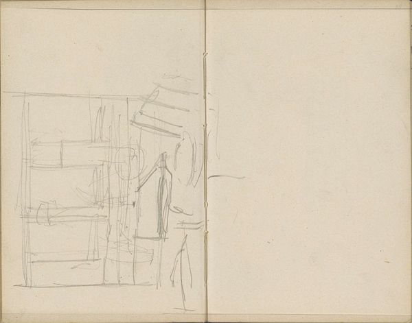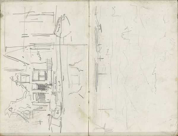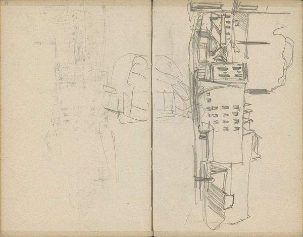 Editor: So, this is George Hendrik Breitner's "View of the Houses on the Vijgendam and Beursstraat (Rokin) in Amsterdam," made around 1902. It's a pencil drawing on paper. I'm struck by its casualness, like a snapshot capturing a moment in time. What do you see in this piece? Curator: Beyond its immediate aesthetic appeal as an Impressionistic cityscape, I see a powerful document of urban life at the turn of the century. Breitner was known for capturing the gritty reality of Amsterdam, and this sketch offers a glimpse into the city's transformation amid industrialization. Notice the stark contrast between the imposing architecture and the everyday life implied by the fleeting sketch. How do you think Breitner's choice to sketch, rather than create a formal painting, reflects his view of the city? Editor: That’s a great point! Perhaps the sketch format is meant to highlight the fleeting nature of modern urban experience. I guess that elevates the importance of the moment. The fleeting quality also reinforces a sense of democratization, documenting experiences for everyone, rather than staged historical or mythological settings. Curator: Exactly! And let's consider the location. The Rokin was a bustling hub of commerce and social activity. Breitner is not just depicting buildings, but he's implicitly commenting on capitalism, class, and the changing social landscape of Amsterdam. Do you see anything in the composition that strengthens this idea? Editor: Maybe the way the buildings seem to loom over the street, like they're imposing themselves onto the lives of ordinary people. It kind of gives off this feeling of capital's omnipresence, like we always have to answer to someone. Curator: Precisely! It is this constant presence in daily life. This interpretation reveals how Breitner's work transcends a mere cityscape. It's an activist stance, questioning power dynamics and social structures. Thinking about that changes your reading of it, right? Editor: Definitely! It’s more than just a pretty picture; it's a social commentary. Thanks for helping me understand it! Curator: It's a collaborative process. Considering the artwork’s cultural contexts, particularly the rise of industrialization and concurrent shifts in economic paradigms, brings fresh life to our reading of an artwork.